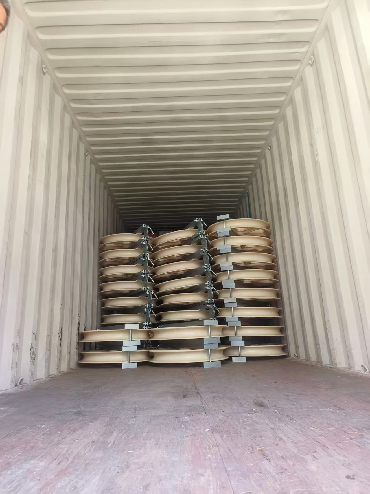 Poleas de diametro de 822mm para tendido de 4 conductores SHWQN822 se exportan a nuestro cliente habitual, ya exportamos más de 2000 juegos de poleas de tendido de 822 mm de diámetro al mundo este año, incluidos 800 juegos de poleas de tendido para helicópteros.
